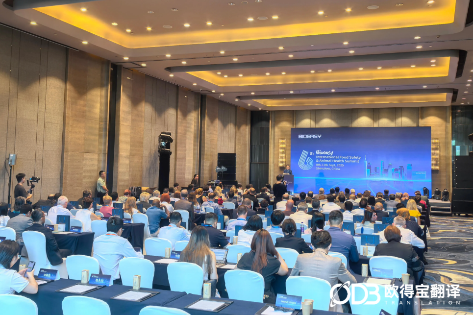 9月10日,第6届易瑞生物食品安全与动物健康研讨峰会(BIOEASY Summit)在深圳成功举办。欧得宝翻译为本次大会提供英俄双语同声传译服务,以精准高效的语言支持,助力跨国技术对话与产业协作。